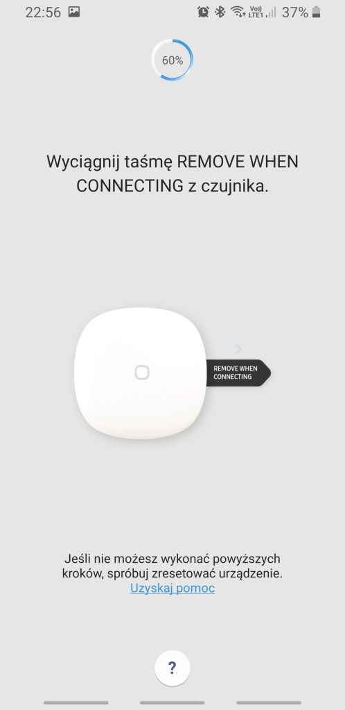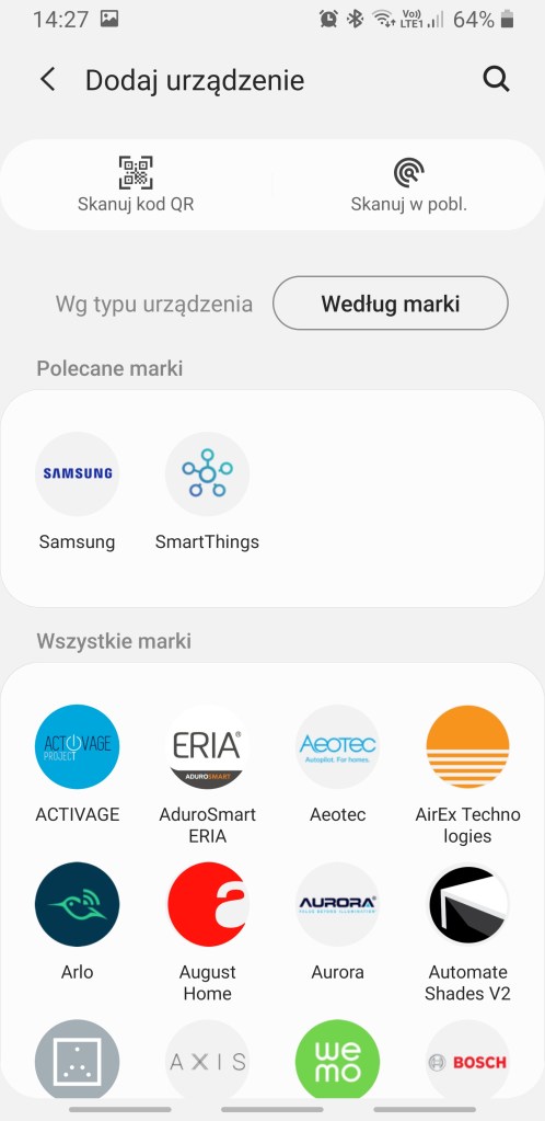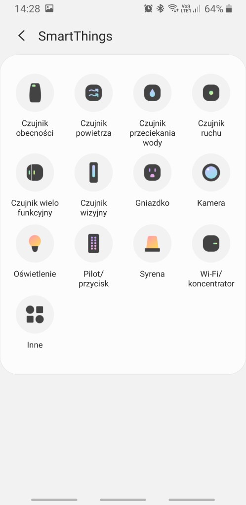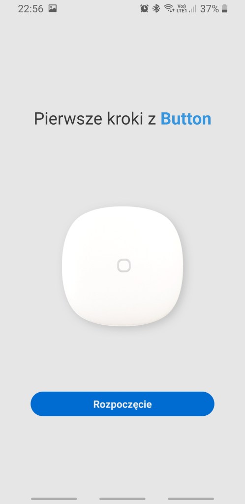 Dodanie do ekosystemu jest proste należy postępować zgodnie z instrukcją w aplikacji. Klikamy w aplikacji „Dodaj urządzenie”, wybieramy markę SmartThings >> „Pilot/przycisk” i model urządzenia „Button”. Kontynuujemy pierwsze kroki, wybierając koncentrator i pomieszczenie dla urządzenia. Połączenia możemy dokonać poprzez zeskanowanie kodu QR bądź pominąć tą opcję i czekać na połączenie chwilkę dłużej. Należy wyciągnąć zabezpieczenie baterii. Po dodaniu do systemu dioda LED na przycisku zaświeci się na zielono, pomyślnym dodaniu można zmienić jego nazwę.