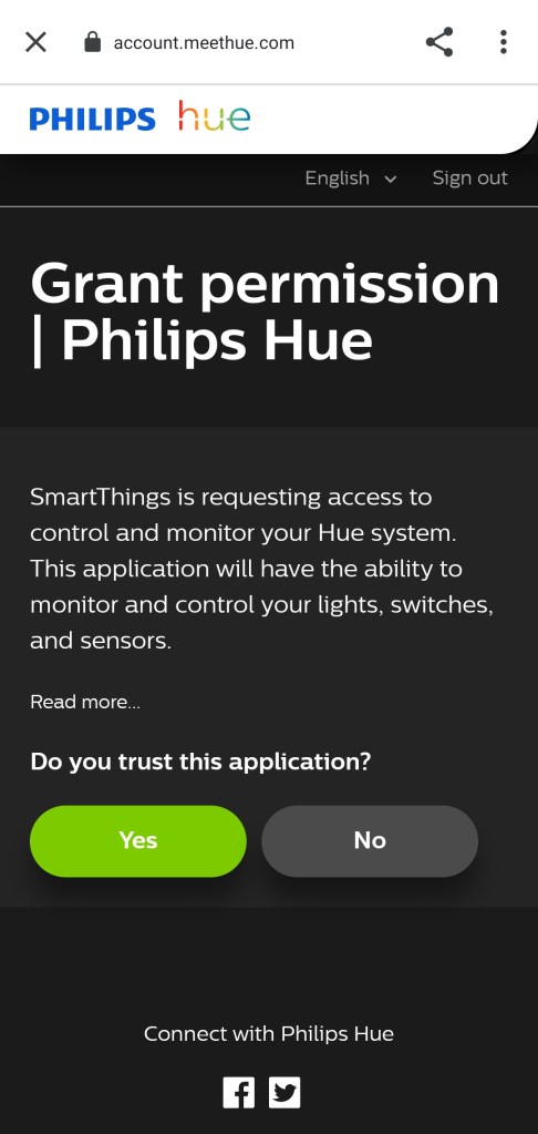 Aby usunąć oświetlenie Philips Hue z ekosystemu SmartThings, kiedy zostało ono połączone bez wykorzystania centrali SmartThings. Musimy odłączyć usługę sieciową Philips Hue z aplikacji SmartThings.