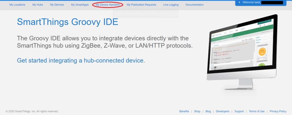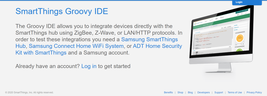 Zacznijmy po kolei wejdź na stronę SmartThings – IDE i zaloguj się (Log in).