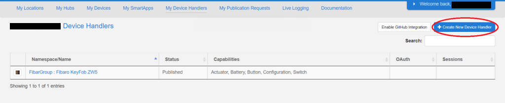 Kliknij Utwórz nowy moduł obsługi urządzeń (Create New Device Handler).