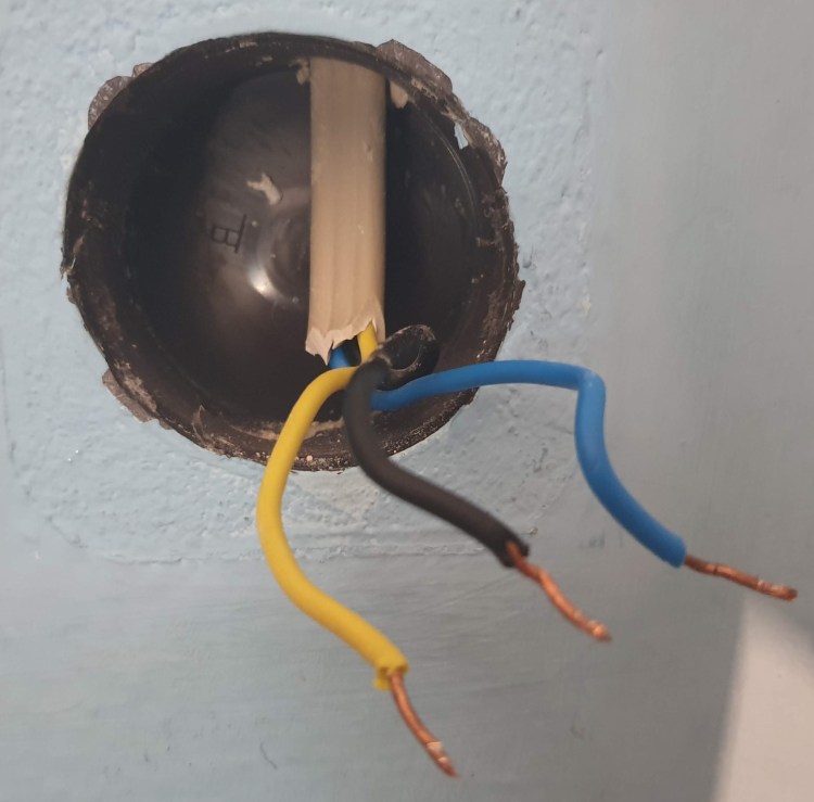Pamiętaj: Przed zakupem zaznajom się z instalacją elektryczną w swoim domu. Całość znajdziesz tutaj. Przyjrzyjmy się teraz przykładowi instalacji w bloku mieszkalnym. W puszcze ściennej posiadam kolory kabli żółty, czarny i niebieski. Oznakowanie niestety nie potwierdziło rzeczywistej funkcji kabli. Przewód fazowy (L) to żyła niebieska pod napięciem 230V. Zaś żyły o kolorach żółtym i czarnym prowadzą do żyrandola. Podłączenie wygląda następująco: