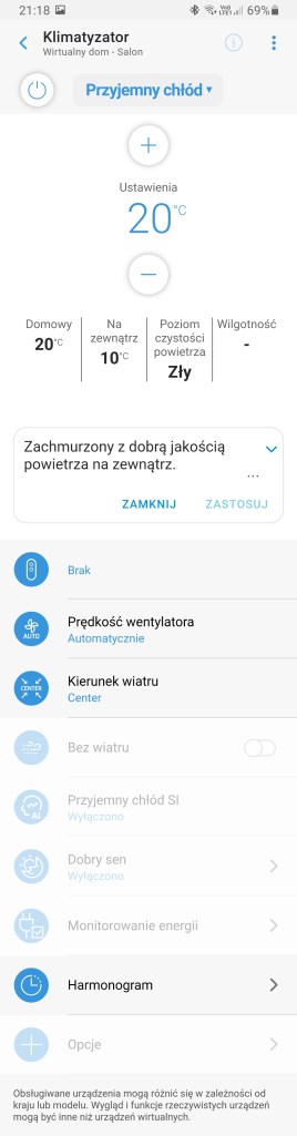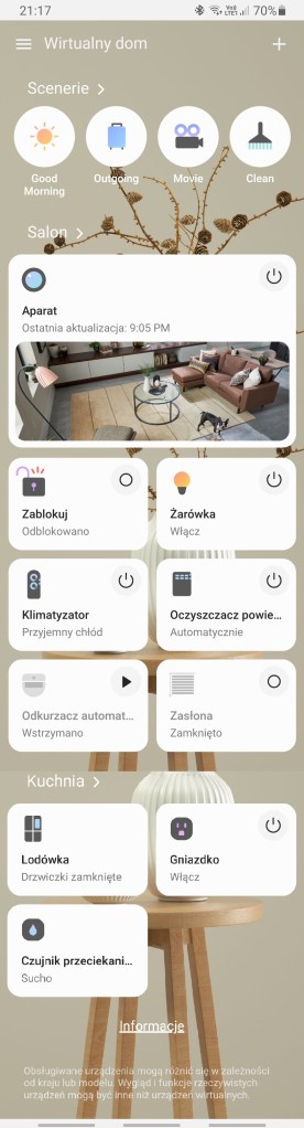 W aplikacji SmartThings, jeszcze przed rozpoczęciem tworzenia własnego inteligentnego domu. Istnieje możliwość zapoznania się z jego wirtualnym odpowiednikiem przygotowanym przez Samsunga w celu demonstracji możliwości aplikacji.