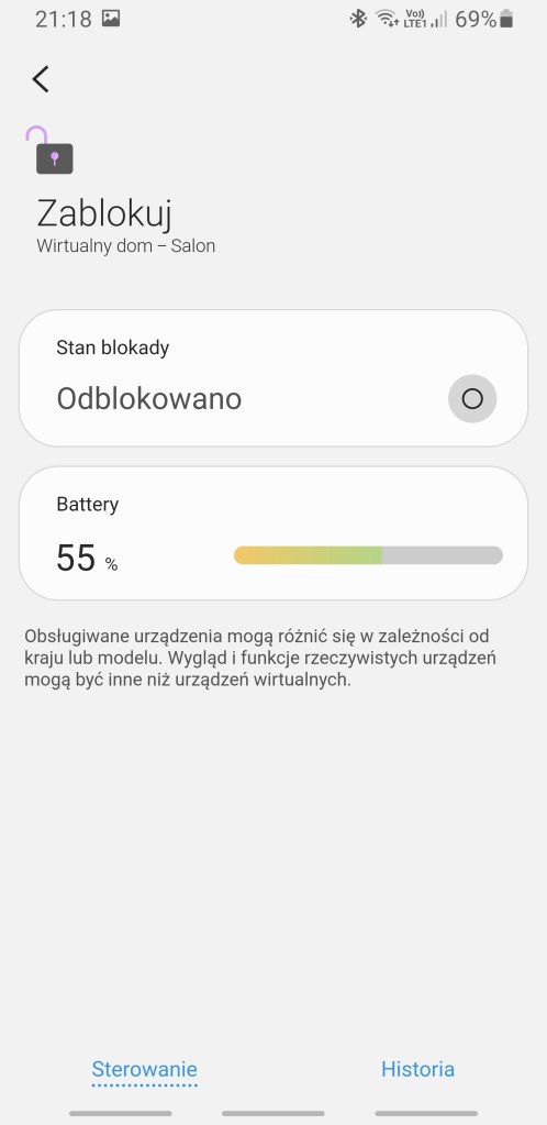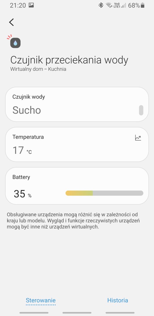 Mamy tutaj możliwość wejścia i zapoznania się z funkcjami każdego z urządzeń. Ukazuje nam się panel z konkretnymi możliwościami czujnika.