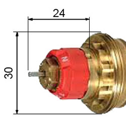 - Zawór z mocowaniem M23x1,5 (RA-N) firmy Danfoss w formie wkładki zaworowej stosowanej w grzejnikach pokojowych zasilanych od dołu. Posiada nastawę wstępną (kryzę).