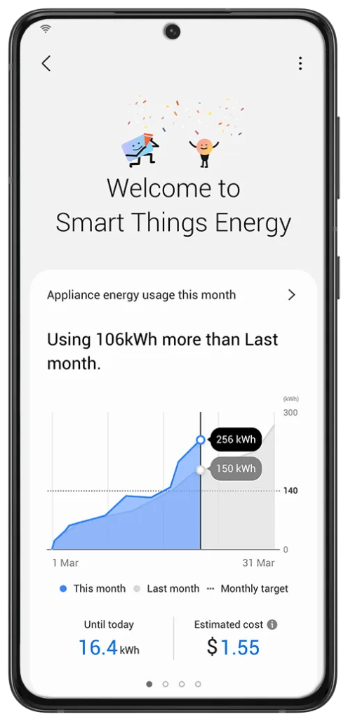 Usługa może być nie tylko wykorzystana do automatycznego przełączania urządzeń w tryb niskiego zużycia energii i zapobiegania ich uruchamianiu, gdy nikogo nie ma w domu, usługa może również powiadamiać Cię, gdy zużycie energii przekroczy miesięczne cele. SmartThings Energy może również wykorzystywać informacje z systemu rozliczeń za energię, w tym stawki za czas szczytu, aby pomóc Ci dostosować zużycie energii, a następnie zminimalizować koszty energii.