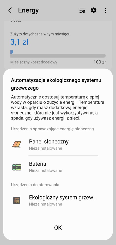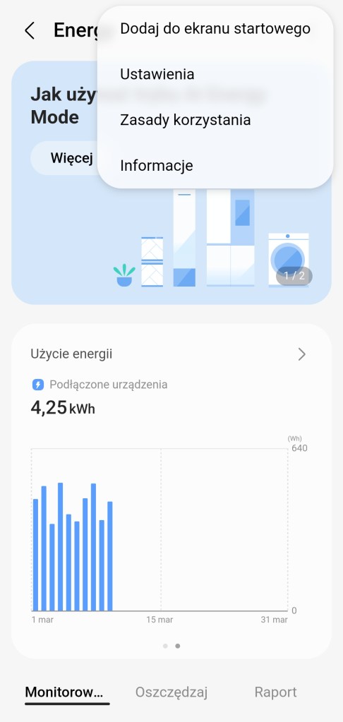 - [Aktualizacja 1]: We wrześniu 2022 roku dodano do wpisu nowe screeny, rozszerzono opis usługi, opisano instrukcję instalacji usługi w aplikacji SmartThings, ujęto informację o obsługiwanych urządzeniach RTV i AGD. Wykresy nie były zapełnione danymi. Wersja Energy to 4.9.35.