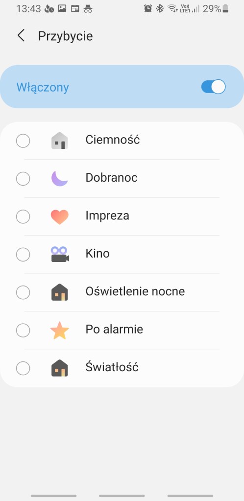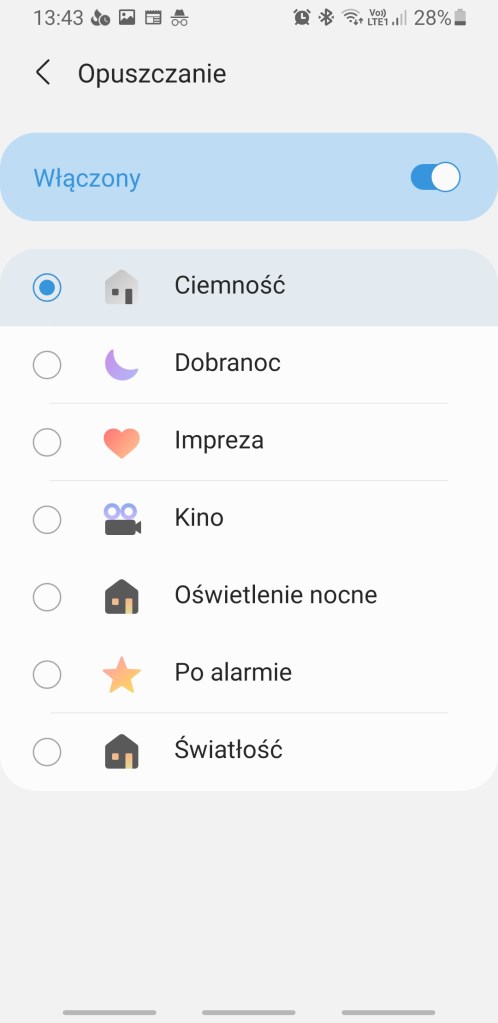 Ustawienie uruchamiania scen po przybyciu lub opuszczeniu domu