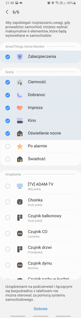 4. Możesz wybrać do 6 urządzeń, scen lub usług, które będą pokazywane w systemie samochodowym.