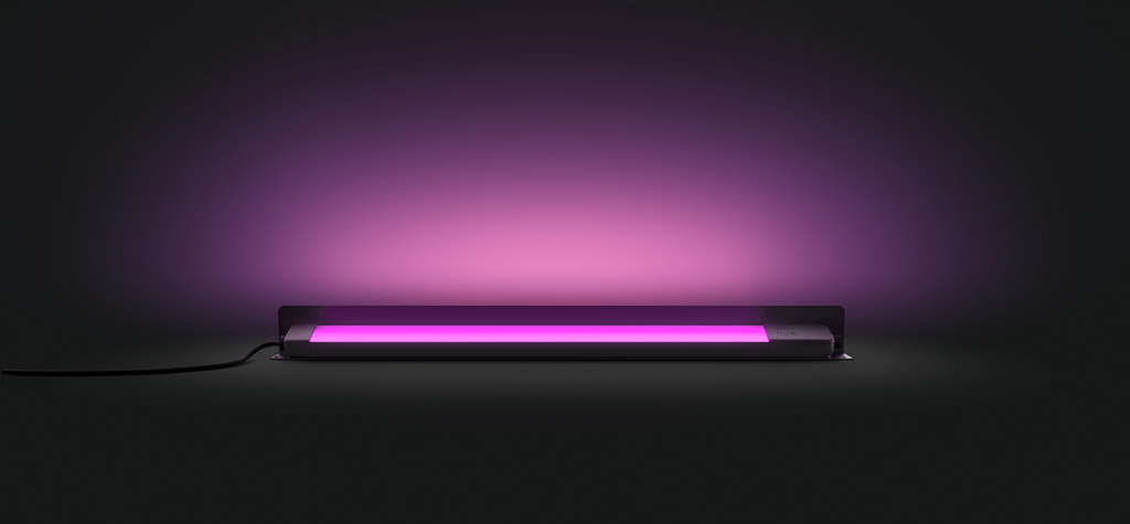 - Nowy liniowy reflektor Philips Hue Amarant oświeci ściany zewnętrzne kolorowym światłem i dodatkowo umożliwia przedłużenie za pomocą szeregowego okablowania