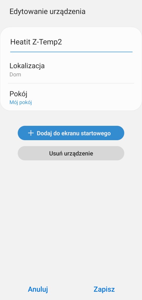 Procedura usunięcia termostatu Z-Temp2 z aplikacji SmartThings.