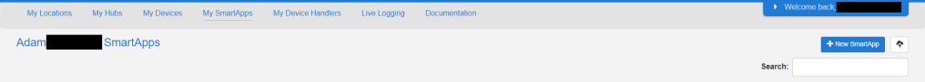 Teraz możemy przejść do środowiska programistycznego SmartThings. Wchodzimy na stronę IDE i logujemy się na swoje konto Samsung. W pierwszej kolejności musimy stworzyć SmartApp, która połączy się z danymi z stacji pogody Netatmo. W tym celu kliknij „My SmartApps” >> „+ New SmartApp”.