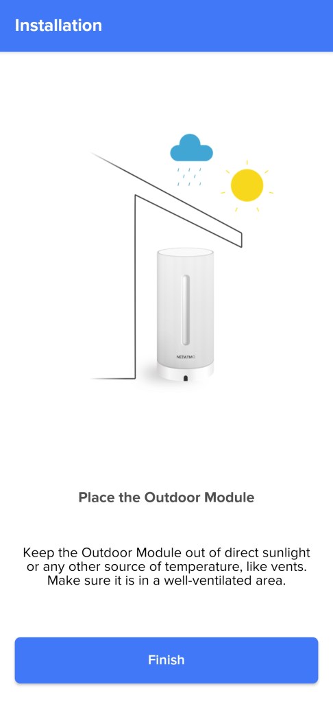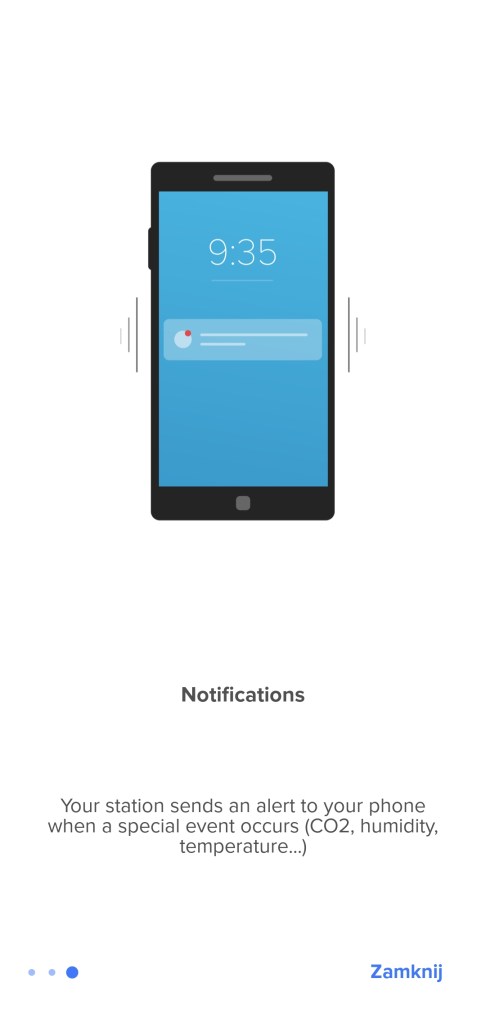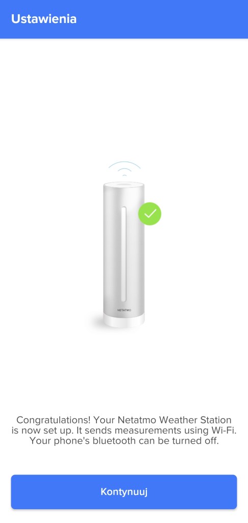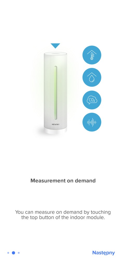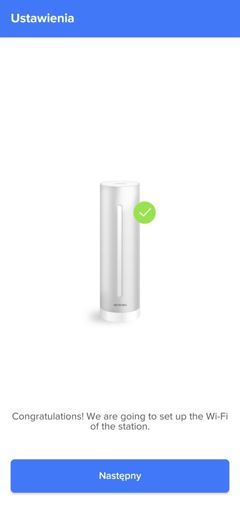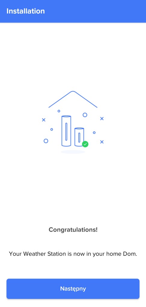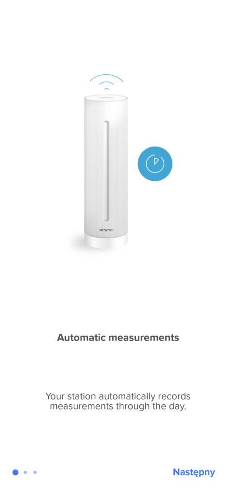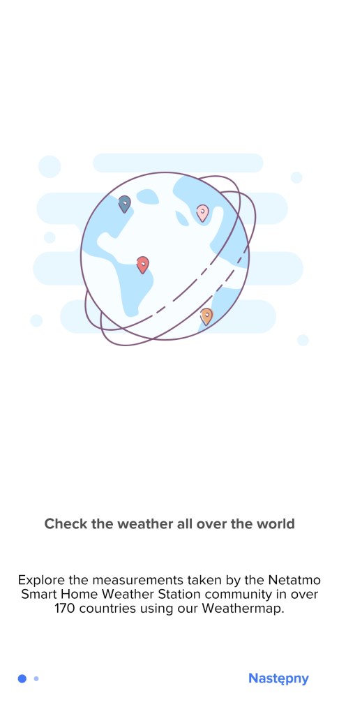 Po umieszczeniu modułów stacji pogody, możemy przystąpić do konfiguracji aplikacji. Konieczne jest pobieranie bezpłatnej aplikacji „Netatmo Weather” z Google Play (Android 4.2 lub nowszy) bądź AppStore (iOS 12 lub nowszy). Po zainstalowaniu otwieramy aplikację. W pierwszej kolejności musimy się zalogować, bądź zarejestrować. Konieczne jest akceptowanie zgody na lokalizację smartfona. Łączymy stację pogody z naszą siecią Wi-Fi. Pod koniec konfiguracji zostaniemy zapytani czy wyrażamy zgodę na udostępnienie danych zewnętrznych z naszej domowej stacji meteorologicznej społeczności Netatmo, w celu współtworzenia map pogody. Na koniec ukaże się nam główny ekran aplikacji.