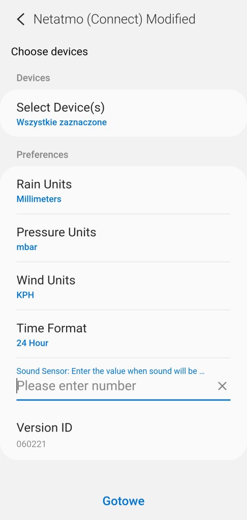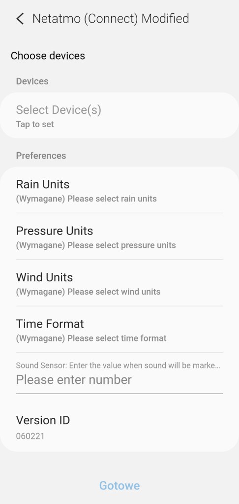Wchodząc ponownie w SmartApps Netatmo (Connect) możemy zmienić moduły oraz jednostki parametrów.