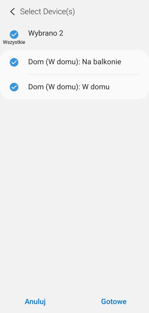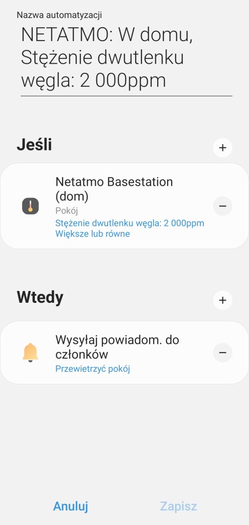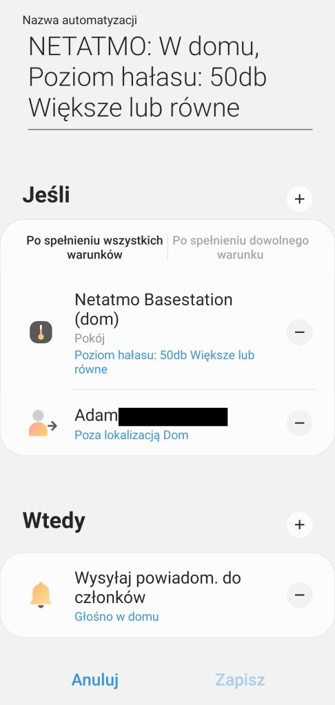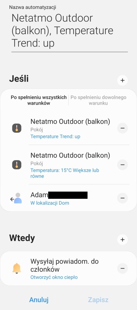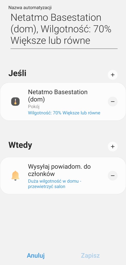 Korzystając z możliwych warunków, przyjrzyjmy się przykładowym automatyzacjom. Mamy poniżej przykład powiadomienia domowników: