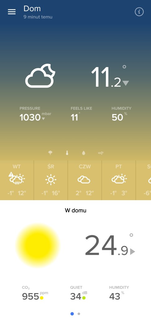 W aplikacji Netatmo mamy również 7 dniową prognozę pogody na najbliższe dni, mapę okolicznych stacji pogody, możliwość graficznej analizy wykresów z danych archiwalnych pomiarów oraz graficzne odwzorowanie aktualnej pogody.