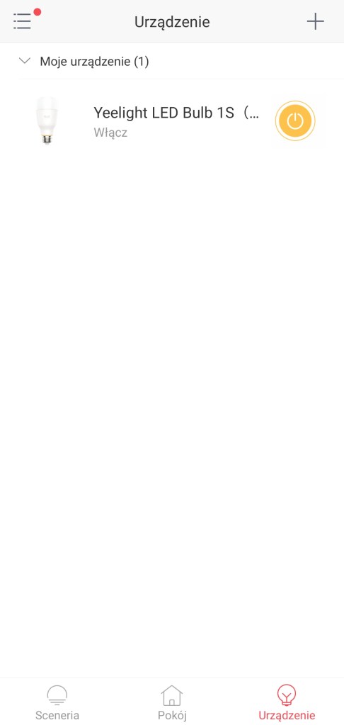 Ekran główny Yeelight po dodaniu żarówki