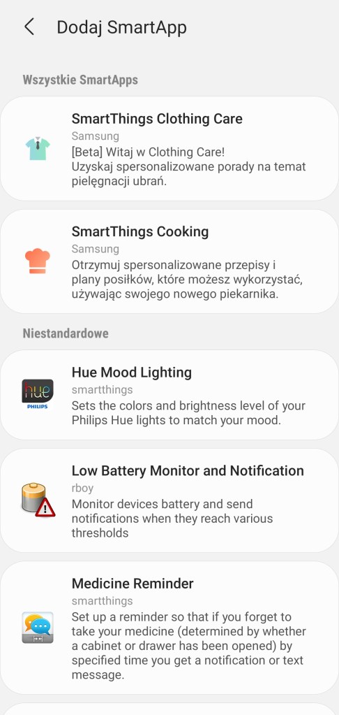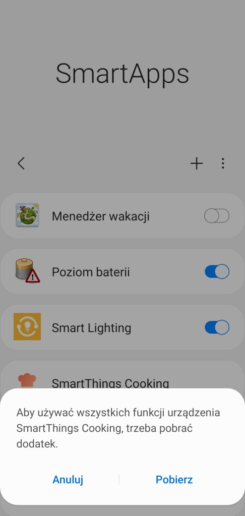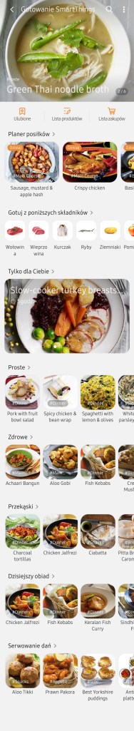 Na ekranie głównym aplikacji SmartThings pojawi się blok z proponowanymi przepisami.