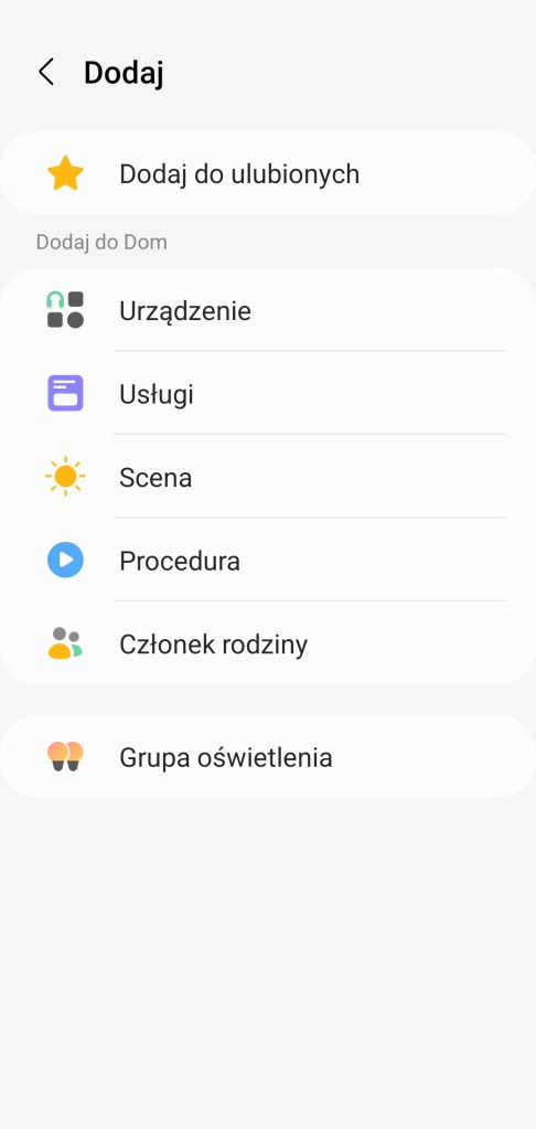 Aby dodać usługę do naszej aplikacji SmartThings, przejdź do ekranu głównego, następnie klikamy Dodaj ( + ) w prawym górnym rogu ekranu, kolejno stuknij Dodaj usługę, z dostępnej listy wybierz Cooking. Nastąpi pobranie i zainstalowanie dodatku do aplikacji.