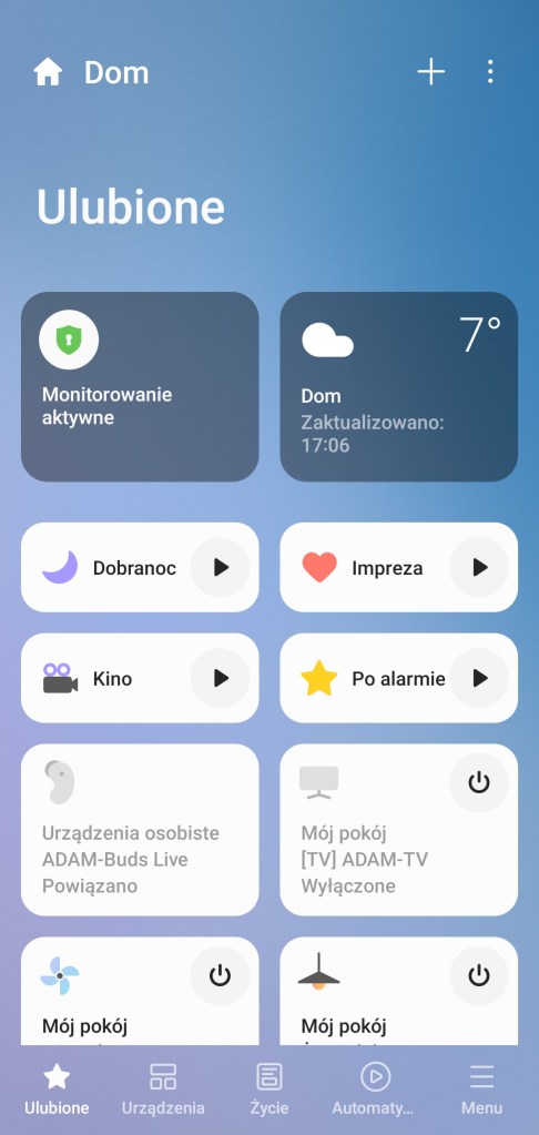 - Czas reakcji 1-2 sek. w ekosystemie SmartThings