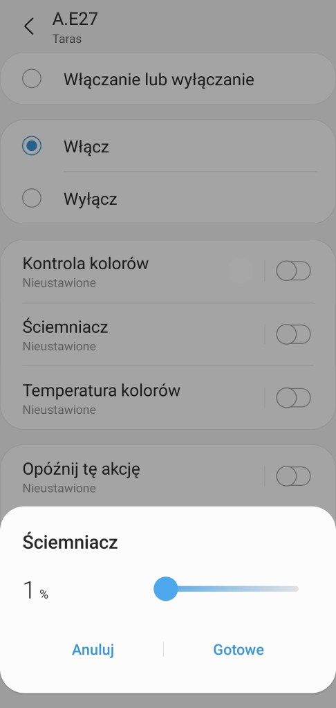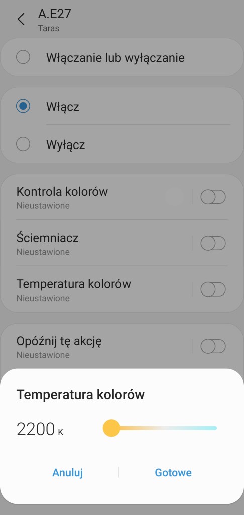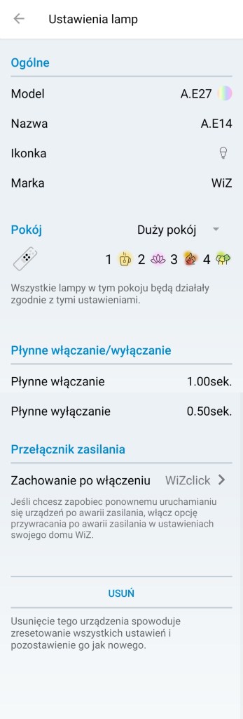 Dodatkowo w ustawieniach znajdziemy możliwość konfiguracji płynnego włączenia/wyłączenia światła oraz standardowe możliwości jak zmiana nazwy czy ikony.