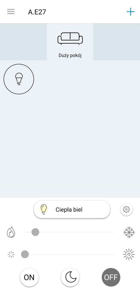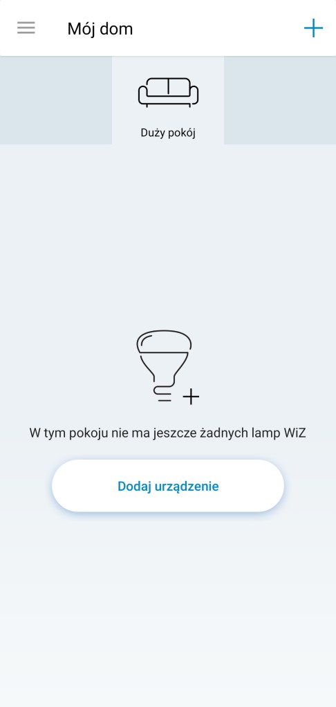 Główny panel aplikacji WiZ po dodaniu żarówki