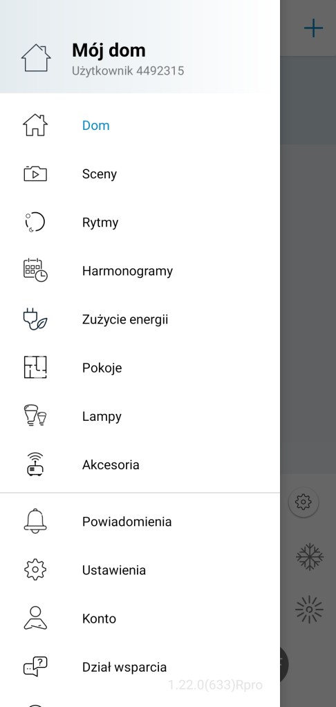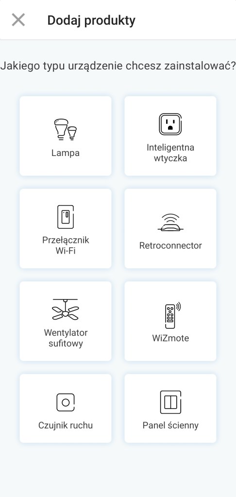 Lewe menu aplikacji WiZ
