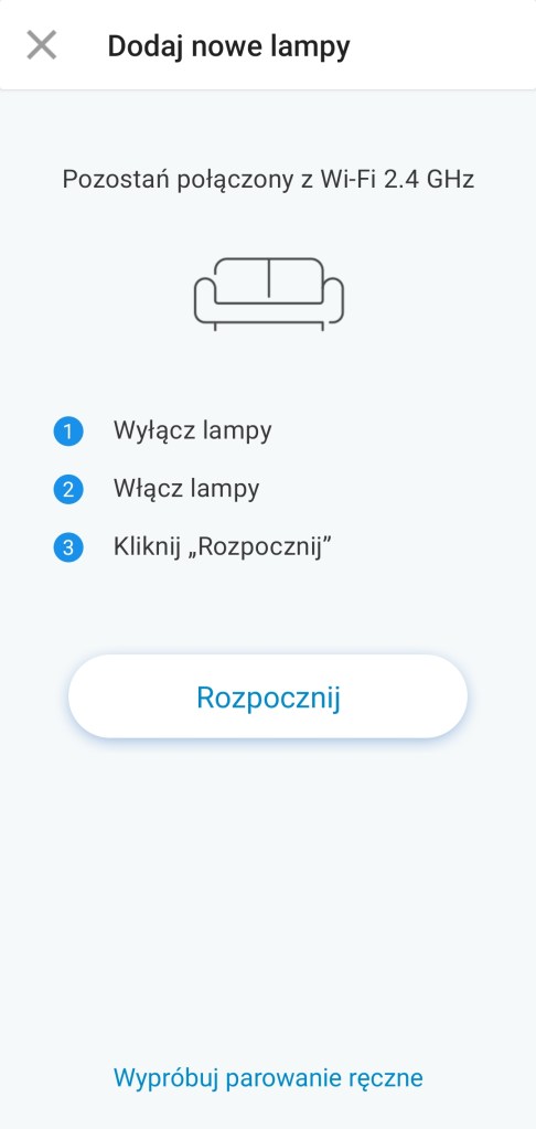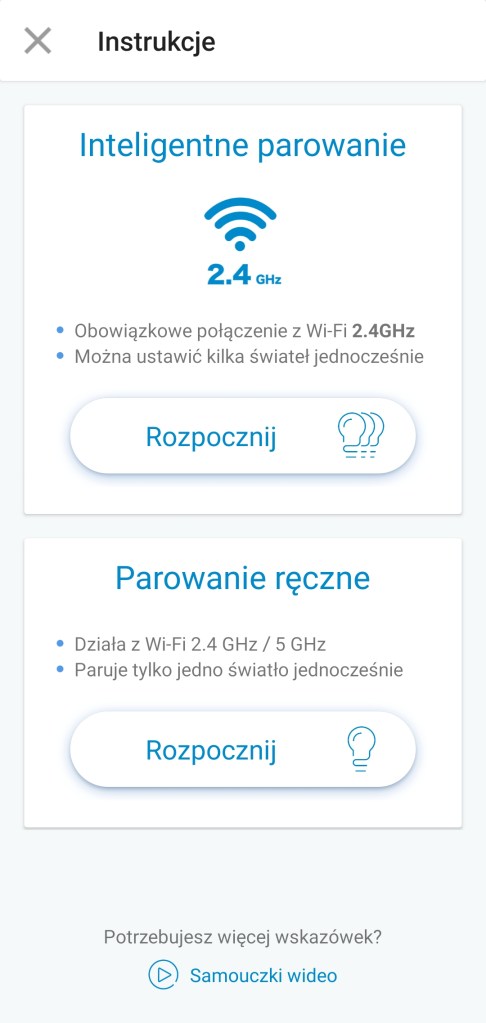 Na początku zainstalujmy żarówkę w żyrandolu, wkręcamy żarówkę do gwintu E27. Zanim przejdziemy do instalowania żarówki musimy pobrać aplikację WiZ z Google Store bądź AppStore. Po zainstalowaniu aplikacji możemy przejść do dodania żarówki do aplikacji WiZ. Pełną konfigurację z tworzeniem pokoi przedstawiamy tutaj. Jeśli posiadamy już utworzony pokój, możemy przejść do dodania żarówki, klikamy „Dodaj urządzenie”. Klikamy odpowiedni typ urządzenia. Teraz staniemy przed wyborem inteligentnego parowania bądź ręcznego (tutaj istotna jest długość fali Wi-Fi). My wybraliśmy pierwszą opcję, wpisujemy dane do naszego routera Wi-Fi. Włączamy i wyłączamy zasilanie żarówki, w naszym wypadku kontakt ścienny i klikamy „Rozpocznij”. Czekamy chwilę, jeśli pojawiła się już żarówka bądź cała grupa żarówek, klikamy „Zakończ”. Zostaniemy poproszeni o wybór ikony urządzenia. Klikamy „Zakończono” kończąc proces instalacji, od teraz możemy sterować żarówką z poziomu aplikacji WiZ.