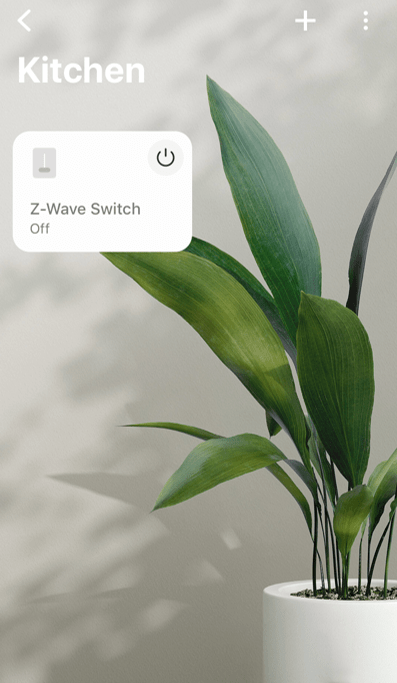 Po dołączeniu przełącznika Z-Wave urządzenie pojawia się na desce rozdzielczej aplikacji mobilnej jako karta z pojedynczym przyciskiem włączania/wyłączania i polem statusu wskazującym, że urządzenie jest wyłączone. Kliknięcie przycisku wywołuje zdarzenie, w którym DTH urządzenia jest tłumaczone na polecenie zestawu podstawowego. Hub wysyła następnie polecenia do urządzenia, aby aktywować przełącznik. Ponadto karta jest aktualizowana, aby pokazać nowy stan przełącznika.