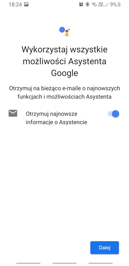 - Otrzymasz powiadomienie o rozpoczęciu procesu konfiguracji Asystenta Google.