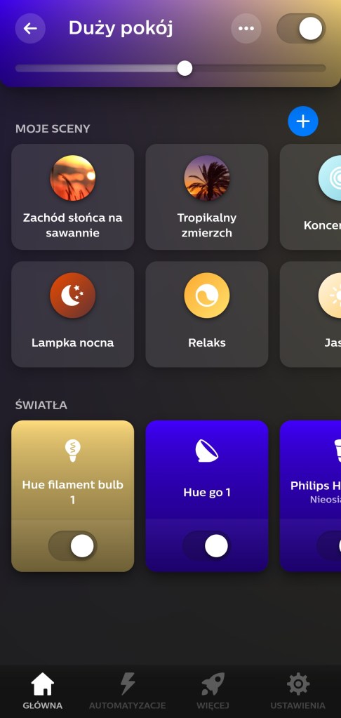 Ekran główny aplikacji został przeprojektowany wprowadzając widok kafelkowy. Wprowadzono galerię scen Hue, którą możemy sukcesywnie powiększać. Dodatkowo wprowadzona responsywność, ujednoliciła interfejs niezależnie od wielkości naszego ekranu.