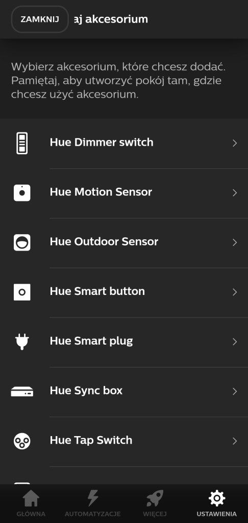 Ustawienia aplikacji Hue, wreszcie są bardziej intuicyjne, z łatwością znajdziemy opcję dodawania nowych świateł oraz tworzenia stref rozrywki.