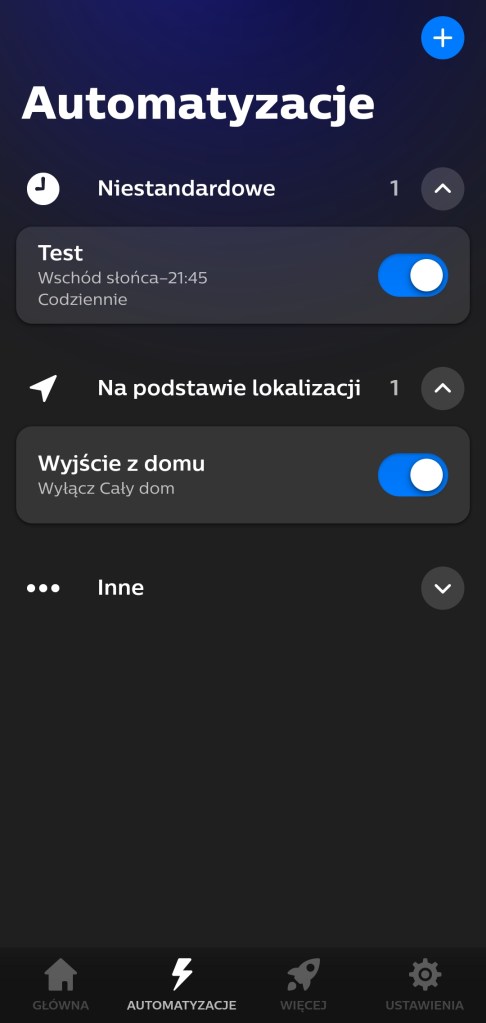 Jedną z głównych nowości jest zakładka automatyzacje, która zastąpiła stare wysłużone procedury. Otrzymaliśmy tym samym większą elastyczność w dostosowaniu automatyzacji. Za przykład mogą posłużyć nam automatyzacje zależne od wschodów i zachodów Słońca. Wszystko to podane jest w nowy przejrzysty sposób.