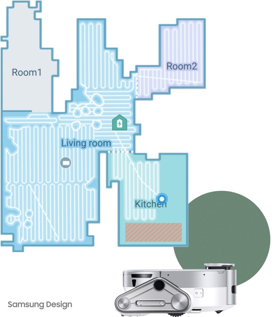 Standardowe odkurzacze robotyczne wymagają stałej kontroli, nawet podczas sprzątania. Dzieje się tak, ponieważ urządzenia zwykle wymagają sporej ilości wskazówek dotyczących sprzątania domu. Aby uczynić ten proces bardziej wydajnym, projektanci Samsunga zaprojektowali robota odkurzającego, który odkurza w podobny sposób, jak człowiek. Dokładnie zbadali różne funkcje i struktury, aby umożliwić robotowi niezależne zarządzanie sprzątaniem od początku do końca.