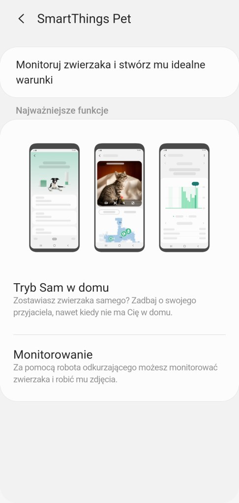 Właściciele zwierząt domowych mogą teraz z jeszcze większą troską zadbać o swoich pupili – nawet jeśli przebywają akurat poza domem. Kiedy zwierzę zostaje samo w domu, usługa SmartThings Pet Care pozwoli na automatyczne odtwarzanie muzyki lub programów telewizyjnych, oferując mu poczucie bezpieczeństwa i zapewniając towarzystwo. Użytkownicy mogą także zdalnie podglądać swoje zwierzęta za pomocą inteligentnej kamery zainstalowanej w urządzeniu Bespoke Jet Bot AI+. Regulując ustawienia oświetlenia, klimatyzacji czy oczyszczacza powietrza, mogą również upewnić się, że zwierzak przebywa podczas ich nieobecności w komfortowych i bezpiecznych warunkach.