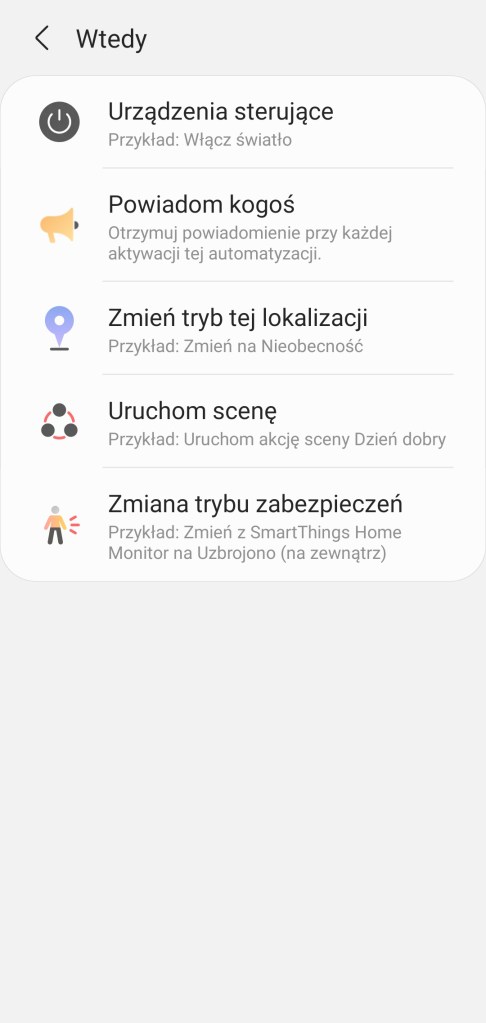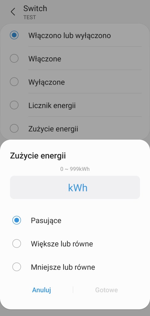 Tworzenie automatyzacji „Jeśli … to Wtedy” musimy podzielić na dwa etapy, ponieważ znacznie różnią się dostępne opcje jeśli inicjujemy warunek „Jeśli”. W pierwszej możliwości „Jeśli” urządzenie pozwala na wybranie opcji „Włączono lub wyłączono” czyli zmiana stanu, oraz „Włączone” i „Wyłączone”, wraz z czasem jak długo ten stan ma zostać utrzymany. Możemy również ustalić wywoływanie z wartości licznika energii, czy też powiadomienie o zużyciu energii. W drugiej możliwości „Wtedy”, mamy ponownie opcje „Włączono lub wyłączono”, „Włączone” i „Wyłączone”. Dodatkowo mamy akcję uruchomienia możemy opóźnić o dowolny czas, jak i wyłączyć automatycznie po ustalonym czasie.