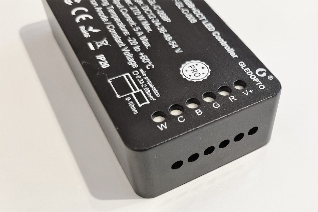 Przechodząc już do sterownika Gledopto RGB CCT jest kompatybilny z wieloma hubami, takimi jak Aeotec Smart Home Hub, SmartThings Hub, mostek Philips Hue, Homee lub Alexa Echo Plus firmy Amazon. Za pomocą tego inteligentnego kontrolera można wygodnie sterować taśmami LED z chipsetami RGB i CCT (5 w 1), a także wszystkimi standardowymi produktami LED z zasilaniem 12/24 V za pośrednictwem inteligentnej bramy domowej. Pozwala to na włączanie/wyłączanie, zmianę koloru, zmianę temperatury barwowej oraz przyciemnianie taśm LED, reflektorów wpuszczanych LED, oświetlenia zewnętrznego LED, a nawet oświetlenia basenu.