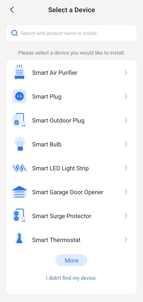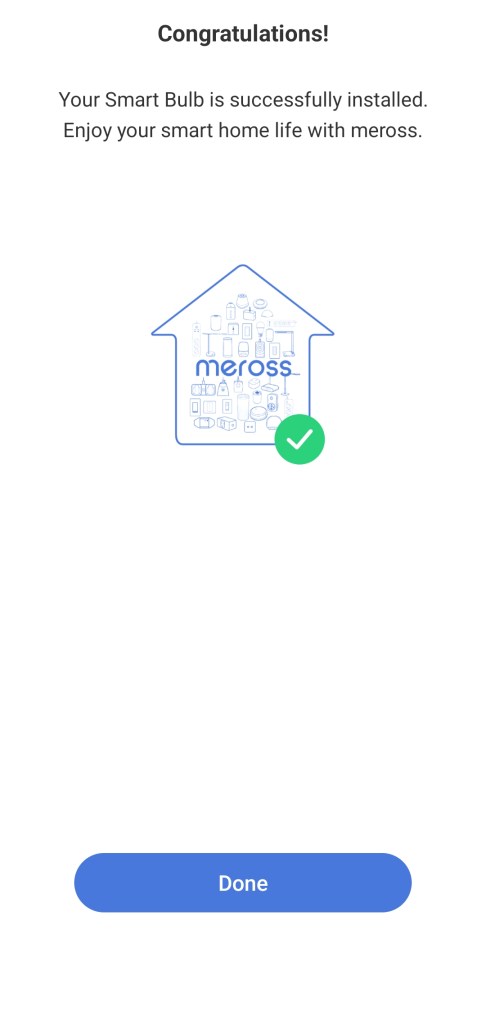 Jeśli posiadamy już zamontowany przełącznik możemy przejść do instalacji w ekosystemie Meross. Zanim przejdziemy do instalowania Smart Switch musimy pobrać aplikację Meross z Google Store bądź AppStore, musimy posiadać smartfon z systemem Android 6 lub nowszym, iOS 13 lub nowszym. Po zainstalowaniu aplikacji możemy przejść do dodania przełącznika do aplikacji Meross. Przy pierwszym uruchomieniu zostaniemy poproszeniu o utworzenie konta. Przechodzimy do dodania urządzenia, klikamy w górnym prawym roku plusa ( + ). Z listy odnajdujemy i klikamy swój typ urządzenia, w naszym wypadku Smart Bulb i wybieramy serię żarówek. Ukarze się nam instrukcja resetowania żarówki, klikamy Next. W końcu ukaże się opcja połączenia się z Wi-Fi, wybieramy Go to Wi-Fi settings, przechodząc tym samym do ustawień Wi-Fi smartfona. Po wyszukaniu pojawi się nasze nowe urządzenie, przykładowo Meross_SW_xxxx, łączymy się z nim. Po pozytywnym połączeniu, udajemy się do aplikacji Meross. Nadajemy dowolną nazwę nowemu urządzeniu, w naszym przypadku będzie to Wiatrak, klikamy Next, następnie wybieramy ikonę i zatwierdzamy Next. Włączamy i wyłączamy zasilanie żarówki 3 razy, za pomocą kontaktu ściennego, klikamy Next. Następnie odnajdujemy żarówkę w ustawieniach sieci Wi-Fi, po połączeniu z urządzeniem, nadajemy żarówce nazwę oraz wybieramy ikonę. W następnym kroku wybieramy z listy swoją sieć Wi-Fi i podajemy do niej hasło, od tej chwili żarówka jest połączona z naszym routerem, zatwierdzamy stukając Next. Po chwili pojawi się komunikat gratulujący pozytywnego dodania urządzenia, kończymy klikając Done.