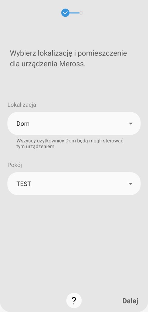 Posiadamy już zainstalowaną żarówkę w aplikacji Meross, możemy przystąpić do dodania jej do inteligentnego domu SmartThings. Przechodzimy do aplikacji SmartThings, na ekranie głównym, klikamy ( + ) „Dodaj”, następnie Urządzenie, wyszukujemy markę Meross, wybieramy przykładowo Przełącznik/ściemniacz (niestety brak tutaj żarówki), ponownie wybieramy producenta. Następnie wybieramy dom oraz pokój w którym ma zaleźć się urządzenie. Po czym zostaniemy przeniesieni na stronę internetową Meross, gdzie logujemy się na konto utworzone w Meross. Następnie zostaniemy poinformowani o udanym połączeniu z ekosystemem SmartThings. Zamykamy iksem w lewym górnym rogu stronę internetową i po chwili pokaże nam się lista wszystkich urządzeń z aplikacji producenta. Klikamy Gotowe, znalezione urządzenie pojawi się w wybranym pokoju.