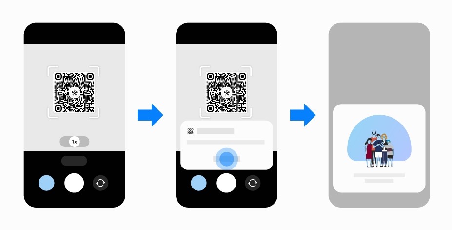 Użyj aplikacji Galaxy Camera, aby zeskanować zaproszenia z kodem QR do lokalizacji SmartThings. Dostępne tylko na urządzeniach Samsung Galaxy.