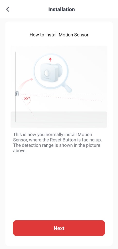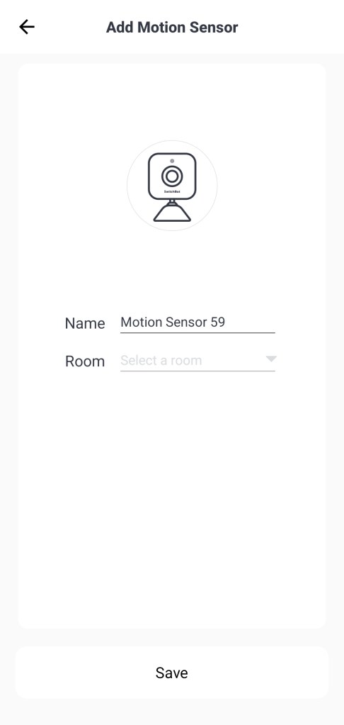 Mając już dodaną centralę Hub Mini, możemy dodać SwitchBot Motion Sensor. W tym celu, zdejmujemy tylną klapę czujnika i umieszczamy w nim dwie baterie AAA – dołączone do zestawu. Klikamy w górnym prawym roku plusa ( + ) w aplikacji SwitchBot. Z listy odnajdujemy i klikamy urządzenie Motion Sensor. Następnie na czujniku przytrzymujemy górny przycisk przez 2 sekundy, aż dioda LED zacznie migać. Klikamy Next, po wyszukaniu czujnika, nadajemy nazwę np. „Motion Sensor” i ewentualnie wybieramy pokój, na koniec wybieramy centralę SwitchBot – Hub Mini. Klikamy Skip, ukaże się teraz krótka instrukcja montażu urządzenia. Zostaniemy zapytani o posiadanie zwierząt domowych oraz możemy ustawić czułość sensora. Na koniec po pozytywnym dodaniu wyświetli się komunikat „Bingo”. Kończmy klikając OK. Czujnik ruchu pojawi się w sekcji Home aplikacji SwitchBot.