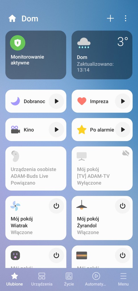 Przy tworzeniu procedur, dawniej automatyzacje „Jeśli … to Wtedy”, ze względu na specyfikę urządzenia mamy do wyboru tylko opcję „Jeśli”, gdzie mamy możliwość wybrania już wcześniej wspomnianych opcji kiedy naciśnięto, dwukrotnie naciśnięto, naciśnięto 3 razy, naciśnięto 4 razy, naciśnięto 5 razy oraz przytrzymano przycisk/przytrzymano do dołu. Ostatnia informacja to stan baterii z zakresu od 0 do 100% w tym czy jest większa/mniejsza.