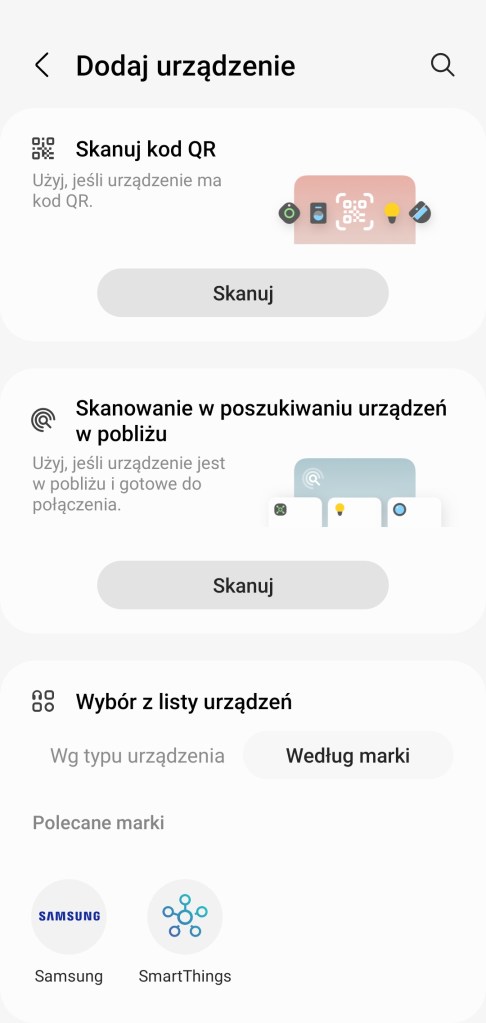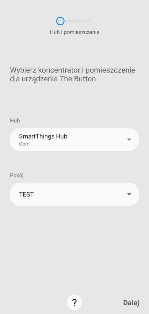 Dodanie do ekosystemu jest proste należy postępować zgodnie z instrukcją w aplikacji SmartThings. Klikamy na ekranie głównym przycisk Dodaj ( + ), w prawym górnym rogu ekranu. Następnie Urządzenie, przesuwamy w dół do sekcji marek Wybór z listy urządzeń, wybieramy markę FIBARO, a później Pilot/przycisk. Z dostępnej listy wybieramy model urządzenia The Button. Kontynuujemy pierwsze kroki, wybierając centralę i pomieszczenie dla urządzenia. Należy wyciągnąć zabezpieczenie baterii oraz 6 razy kliknąć przycisk. Po pomyślnym znalezieniu urządzenia, możemy zmienić jego nazwę. Kończymy proces instalacji, klikając Gotowe.