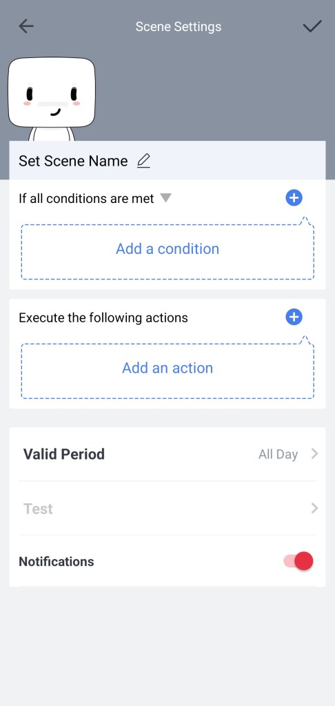 - Ustaw nazwę sceny i dotknij ( √ ), aby zakończyć konfigurację