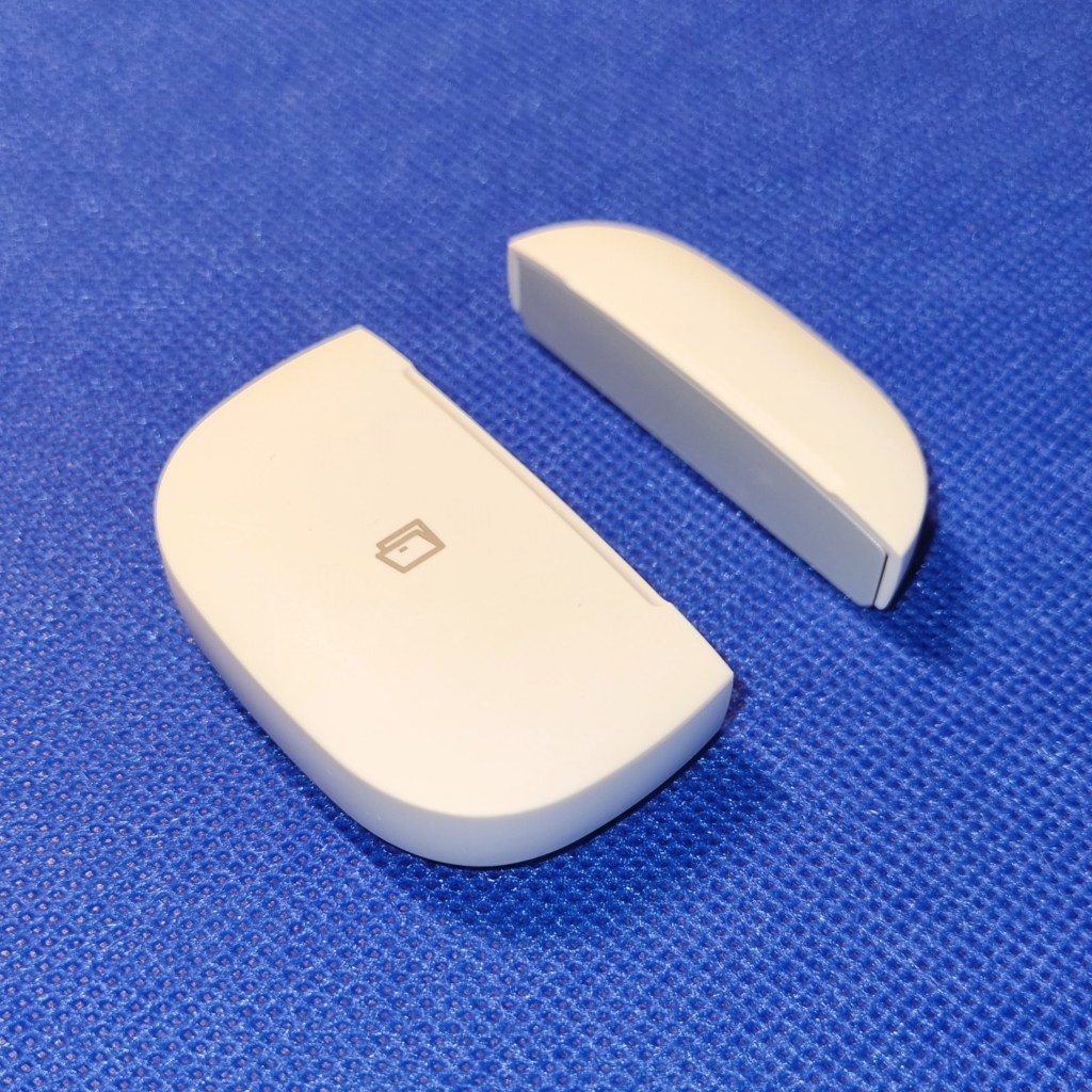 Sensor składa się z dwóch części głównego urządzenia i magnesu. Główną funkcją jest czujnik zbliżenia, przykładowo czy drzwi są otwarte. Urządzenie posiada również czujnik temperatury przydatne przy zamontowaniu na oknie oraz czujnik wibracji, który przykładowo uaktywni się przy próbie zbicia szyby. Komunikacja odbywa się po protokole Zigbee. Działa dzięki zasilaniu bateryjnemu informując o aktualnym zużyciu. Bateria to CR2450 koszt około 7 zł za sztukę. Sensor jak na czujnik drzwi ma dość spore rozmiary (4,36 x 5,18 x 1,37 cm), miałem problem z odpowiednim umieszczeniem na oknie, nie mieścił się a ramie okna. Waga to 40,8 grama. Dostępny tylko w kolorze białym.