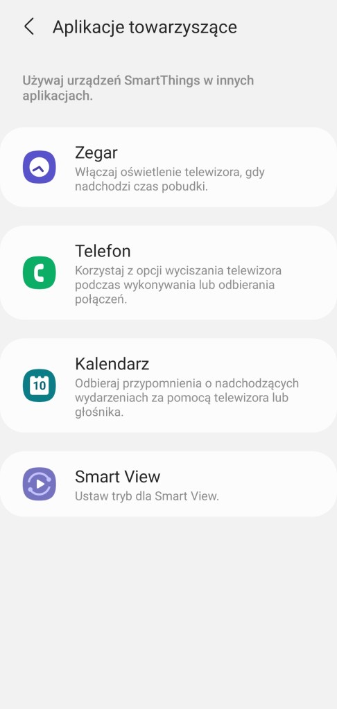 Listę obsługiwanych aplikacji i urządzeń Galaxy można również znaleźć w aplikacji towarzyszącej SmartThings.