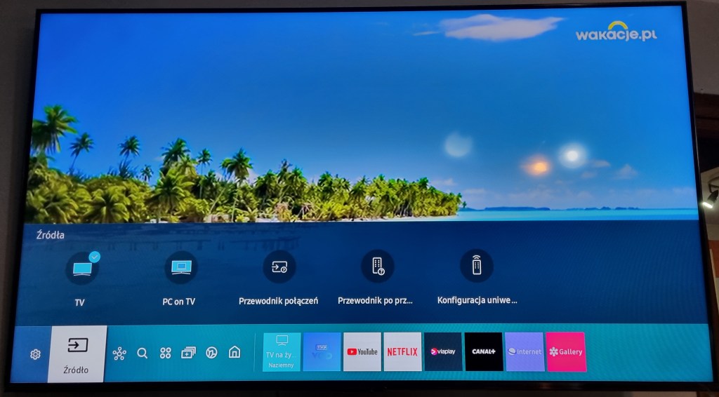 Powiedzmy sobie jeszcze o całym SmartHubie jego możliwościach i funkcji. Zacznijmy od głównej strony huba, tutaj widzimy aplikacje zainstalowane na pasku szybkiego dostępu, opcje prywatności, powiadomienia. W następnej sekcji, możemy uruchomić tryb Ambient Mode i wybrać wyświetlany obraz. Obrazy są podzielone na odpowiadające im kategorie. Kolejno mamy Multi View, pozwalający przykładowo wyświetlić telewizję na żywo i aplikację YouTube lub ekran telefonu. W sekcji „Apps” znajdziemy wszystkie aplikacje i możliwość ich instalacji. W sekcji „Szukaj” jest możliwość wyszukania w Internecie lub TV szukanej frazy. Później mamy sekcję „SmartThings” mamy tutaj podgląd na urządzenia i szybką możliwość sterowania nimi. Następnie w „Źródło” istnieje możliwość wybrania czy oglądamy TV na żywo, uruchamiamy obraz PC czy smartfonu na telewizorze. Ostatnia sekcja „Ustawienia”, kryje szybki dostęp do opcji Wi-Fi, trybu inteligentnego, zmiany trybu obrazu, dźwięku czy gry i wiele więcej zaawansowanych ustawień naszego telewizora.