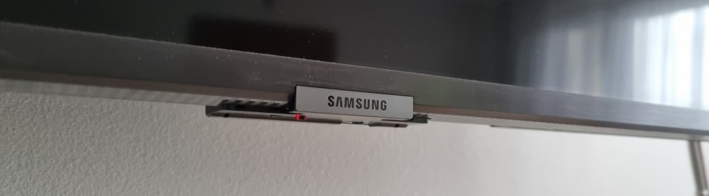 Na chwilę uwagi zasługuje również sam pilot. Do zestawu Samsung dołączył jego najnowszą wersję SolarCell Remote (TM2180E), który może się poszczycić ciekawymi osiągnięciami technicznymi. Pilot został wyposażony w panel solarny, tym samym możliwe jest ładowanie za pomocą światła naturalnego lub wewnętrznego. Alternatywnie mamy możliwość przez port USB. Tym samym zrezygnowano z klasycznych baterii, w trosce o środowisko.