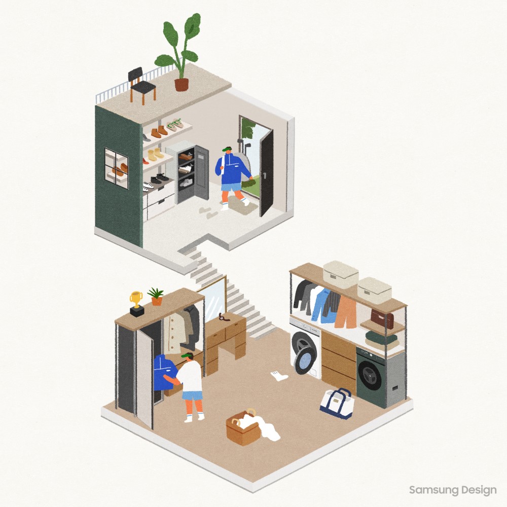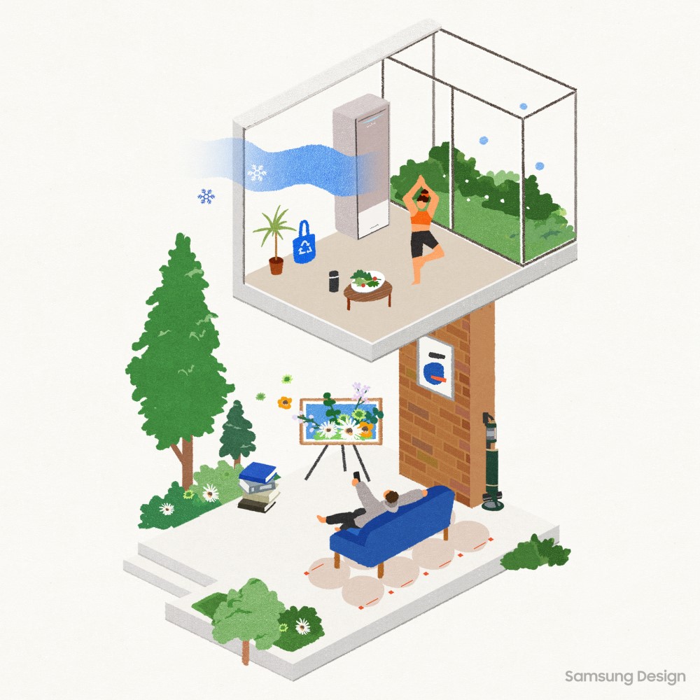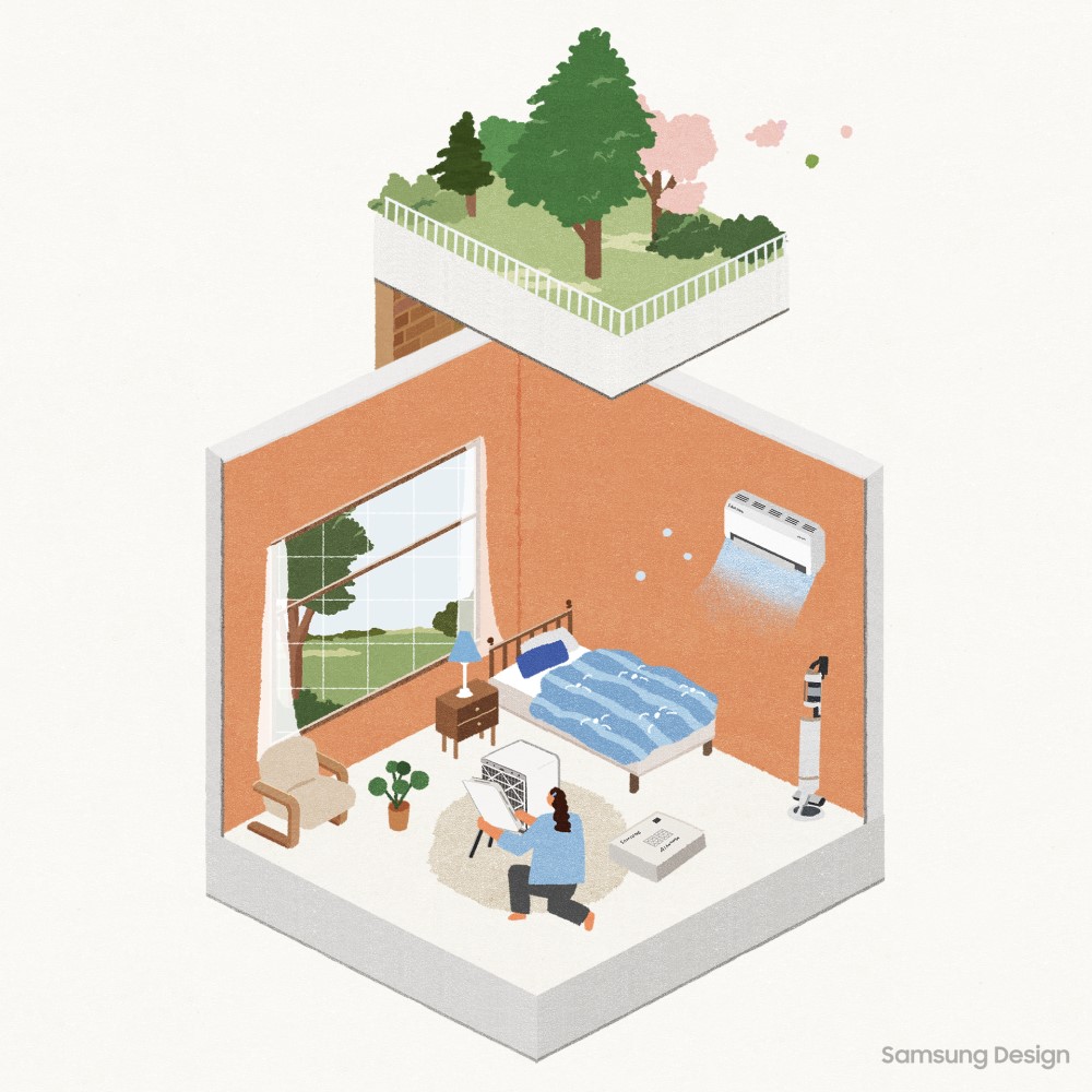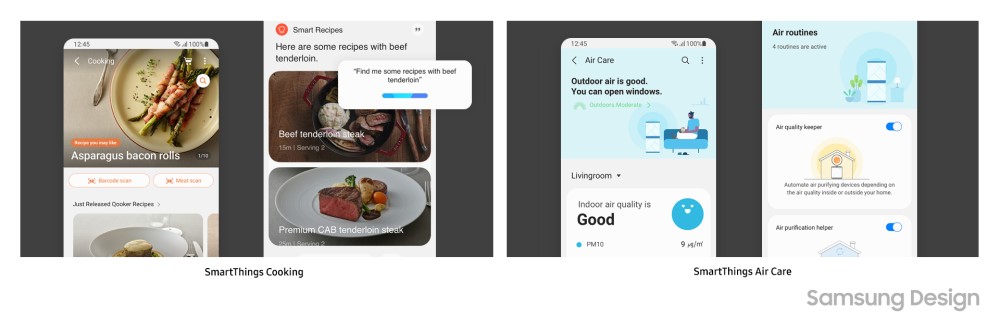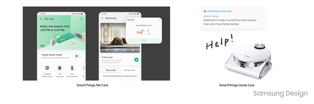 SmartThings Home Care to usługa, która nie tylko kontroluje wszystkie urządzenia AGD firmy Samsung, ale także reaguje na problemy i pomaga im zapobiegać, przewidując je z wyprzedzeniem. Na przykład aplikacja wysyła ostrzeżenie o ryzyku zamarznięcia, gdy pogoda szybko się ochłodzi. Oferuje również przewodnik odszraniania i zaleca korzystanie z funkcji diagnostycznych klimatyzatora, gdy pogoda się ociepli. Ponadto usługa sprawdza w czasie rzeczywistym stan wszelkich wymiennych komponentów, wysyłając powiadomienie, gdy wymagana jest wymiana, i usprawniając proces zakupu zamiennika. Dzięki przyjaznej usłudze chatbota SmartThings Home Care i jej przewodnikowi reakcji krok po kroku, użytkownicy mogą samodzielnie rozwiązywać problemy z urządzeniami gospodarstwa domowego, bez polegania na mechaniku przy prostych zadaniach.