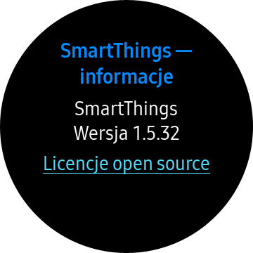 Podkreślić należy, że na zegarku mamy bardzo ograniczoną powierzchnię wyświetlacza, w związku z tym, wszystkiego na nim w wygodnej formie nie wyświetlimy. Po zainstalowaniu SmartThings dla systemu Tizen, aplikację znajdziemy na liście aplikacji na zegarku – możemy ją dodać do widgetu „skróty aplikacji”, aby zawsze ją mieć pod ręką. Po wejściu do aplikacji w głównym panelu, u samej góry możemy wybrać nasz inteligentny dom, w naszym wypadku „Dom”. Następnie mamy listę urządzeń z podziałem na pokoje, po nich pojawia się lista scenerii. U samego dołu panelu głównego mamy Automatyzacje oraz Ustawienia. Po wejściu do automatyzacji znajdziemy listę utworzonych procedur. A po wejściu do ustawień możemy zarządzać elementami, tym samym wybrać do jakich urządzeń i scenerii chcemy mieć dostęp. W informacjach możemy sprawdzić również wersję aplikacji, w naszym wypadku jest to 1.5.32. Całość pokazana na przykładzie Samsung Galaxy Watch Active 2.