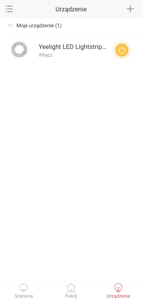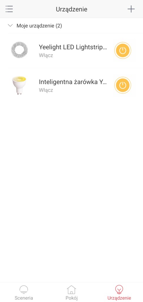 Ekran główny Yeelight po dodaniu reflektora